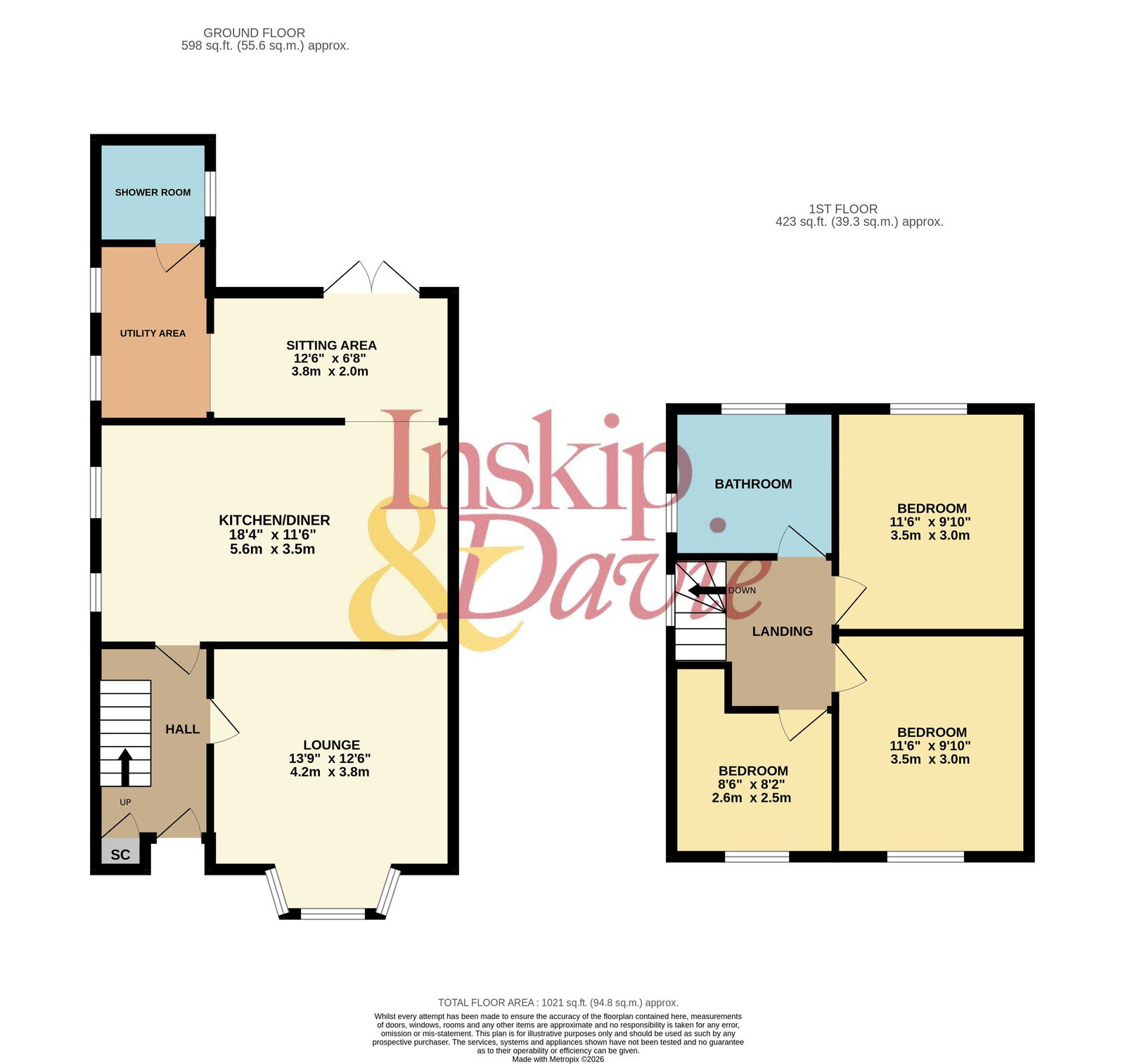 The ground floor also includes a downstairs WC incorporating a shower cubicle, offering flexible accommodation for guests or family use.