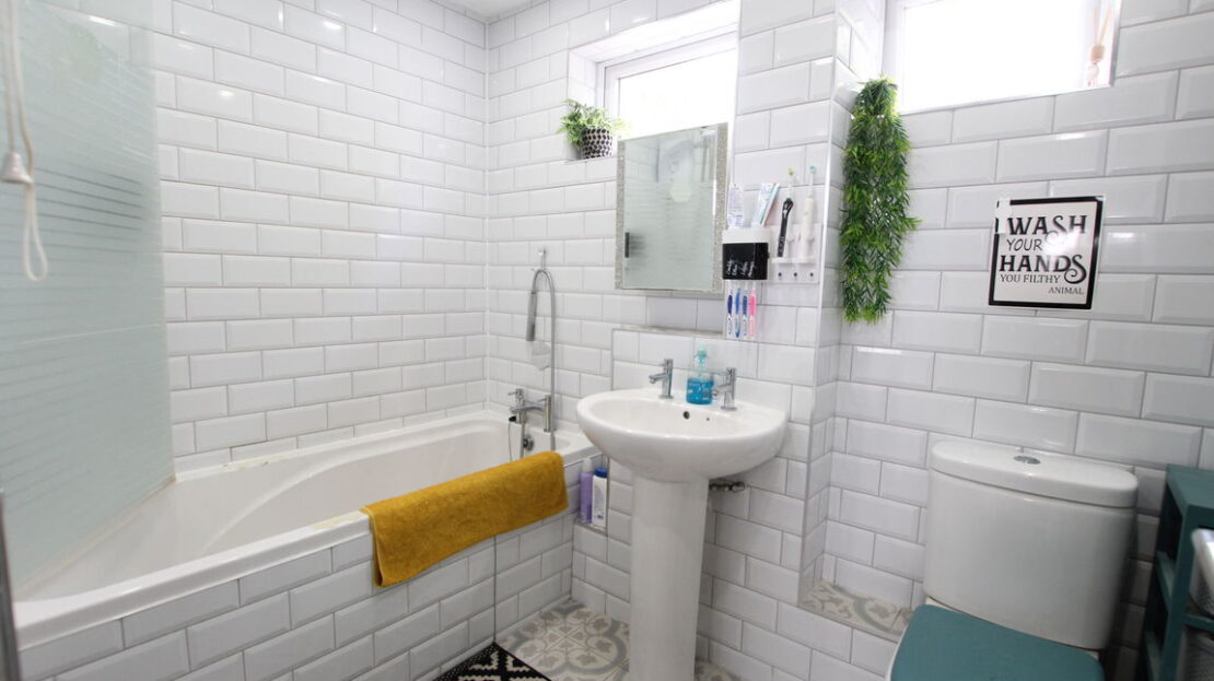 uPVC double glazed windows to front elevation, chrome vertical towel rail/radiator, three piece suite comprising of low level W.C, wash hand basin, panel bath with shower/mixer tap over, tiling to splash areas.