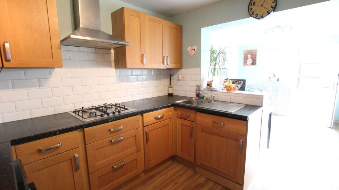 Dual aspect room with uPVC double glazed windows to side and rear elevation and uPVC double glazed door to rear elevation, double panel radiator, fitted kitchen comprising of single drainer stainless steel sink unit with mixer tap over, roll top work surfaces, range of base units incorporating built-in stainless steel gas hob and electric oven, plumbing for washing machine, built in dish washer, space for fridge freezer, tiling to splash areas, matching range of wall mounted units incorporating stainless steel extractor hood, ideal area for table and chairs.