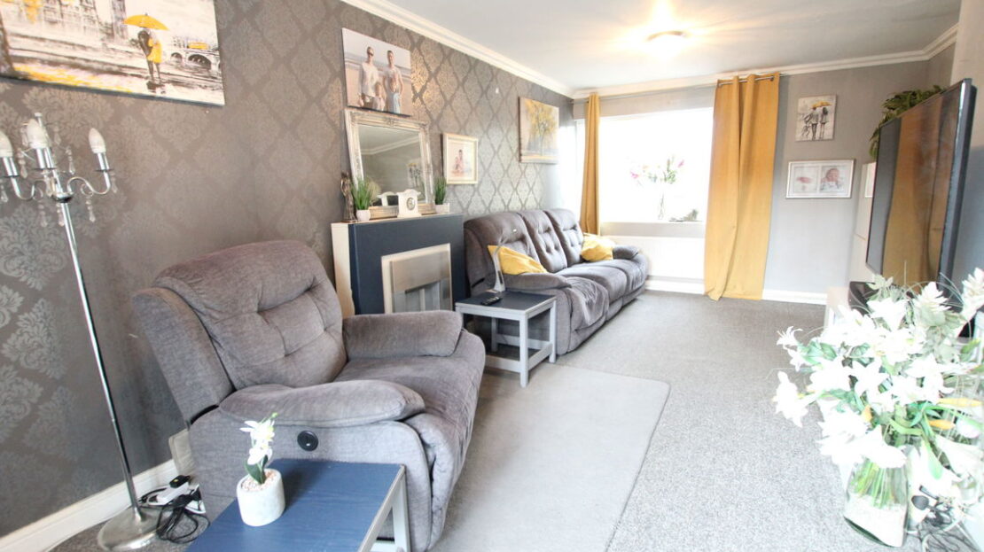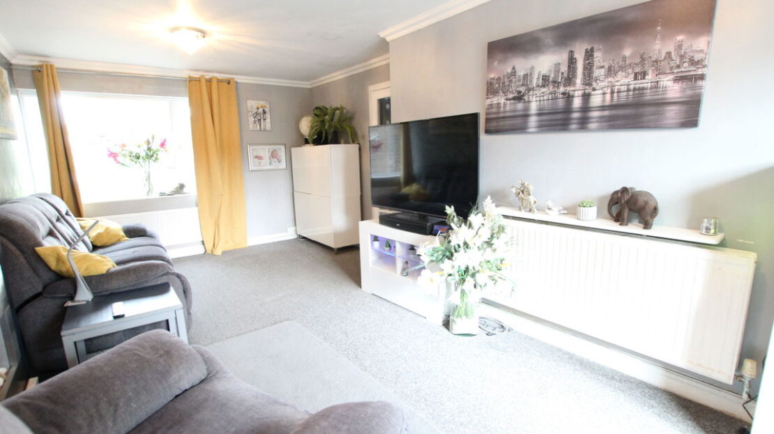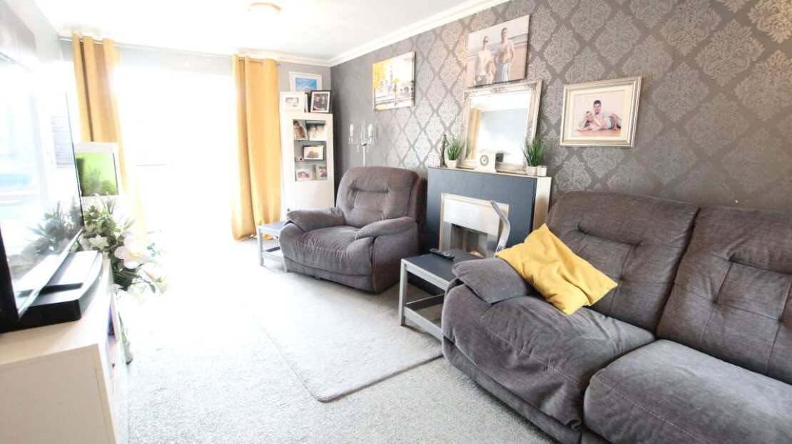 Dual aspect room with uPVC double glazed window to front elevation and uPVC double glazed sliding door to rear elevation, two single panel radiators, coving to ceiling.
