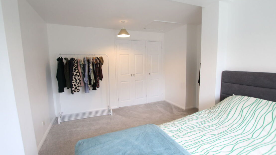 uPVC double glazed window to rear elevation, single panel radiator, built-in double door wardrobe with rail and shelf fitted.