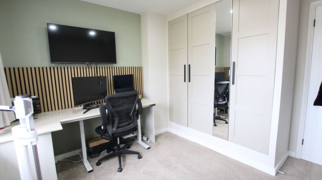 uPVC double glazed window to front elevation, double panel radiator, built-in triple door wardrobe with rail and shelf fitted.