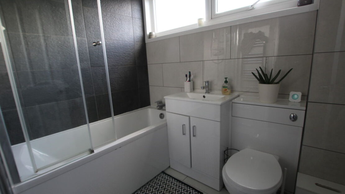 uPVC obscure double glazed window to front elevation, double panel radiator, three piece suite comprising of low level W.C, wash hand basin, panel bath with shower/mixer tap over, tiling to splash areas.