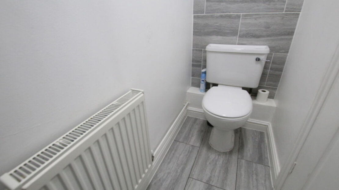 Single panel radiator, fitted modern two piece suite comprising low level WC, wash hand basin, tiling to all splash areas, tiled flooring, extractor fan.