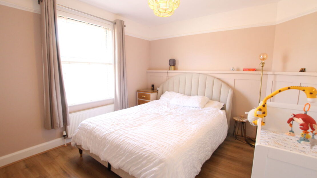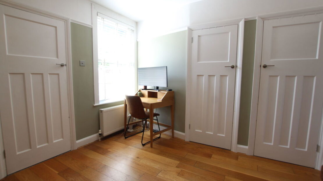 uPVC double glazed window to front elevation, single panel radiator, built-in wardrobe with rail and shelf fitted.