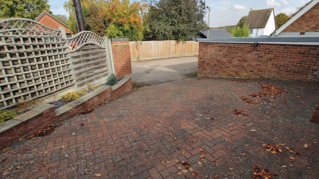 Block paved double width private driveway providing off road parking and leading to: