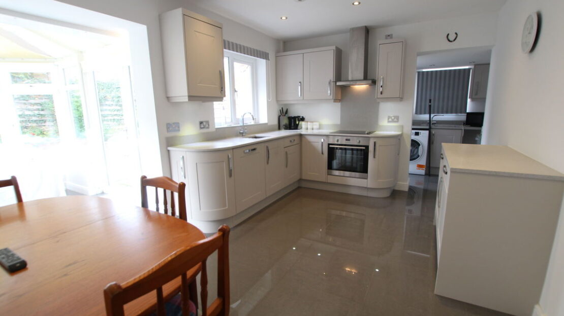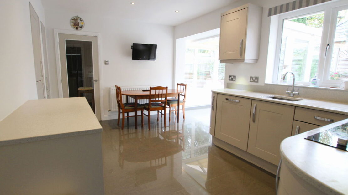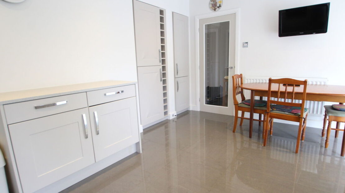 An open plan conservatory running into the breakfast/dining area of the kitchen, uPVC double glazed brick based conservatory with double panel radiator, high gloss’ tiled floor, twin doors opening onto patio and garden.
