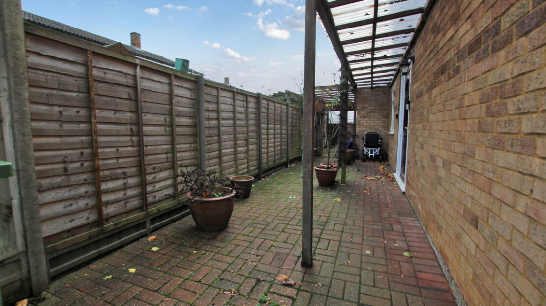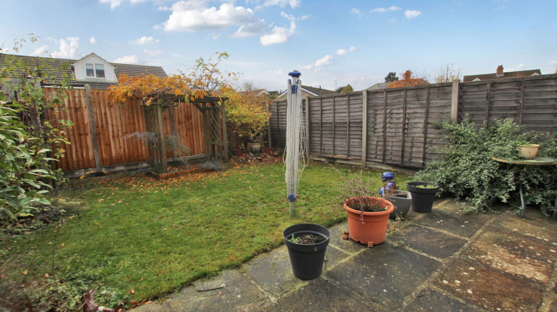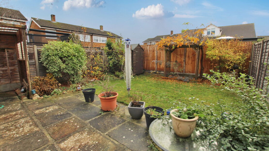 Mainly laid to lawn, paved patio, timber garden store/shed, enclosed by 6’ timber panel fencing.