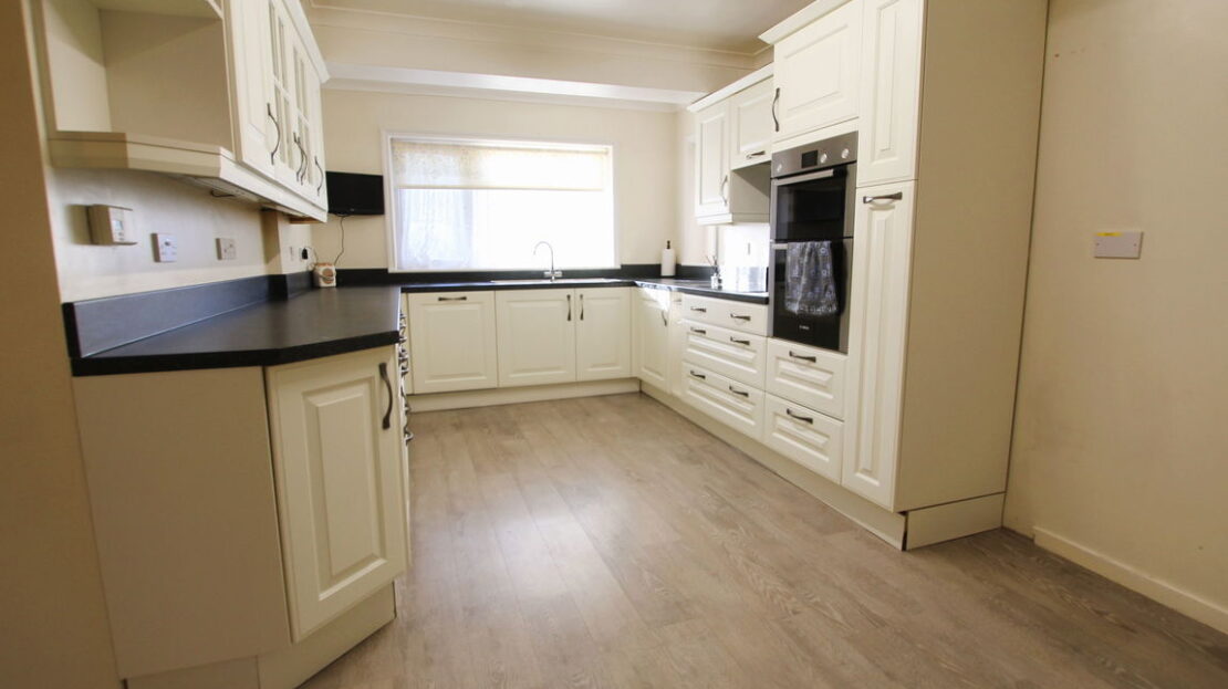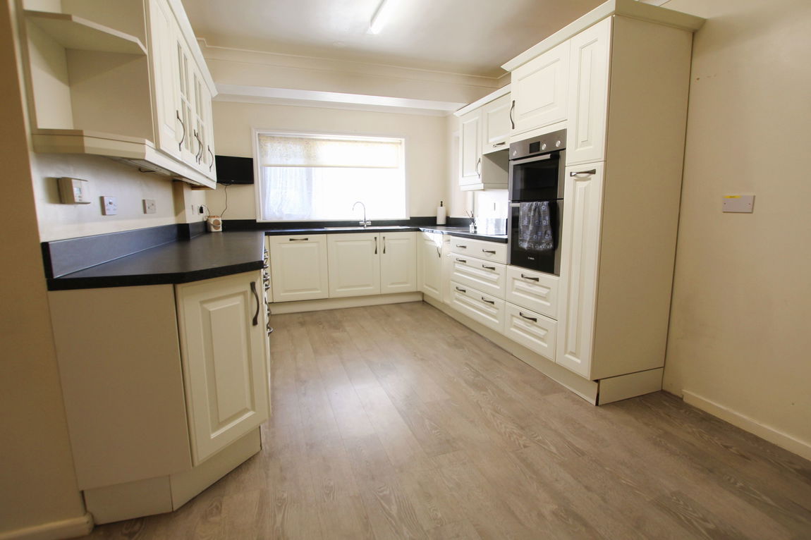 uPVC double glazed window to front elevation, double panel radiator, extensive fitted kitchen comprising of single drainer stainless steel sink unit with mixer tap over, roll top work surfaces, range of base units incorporating built-in Bosch electric hob and Bosch electric oven with separate grill above, built-in dish washer, space for fridge freezer, matching range of wall mounted units incorporating extractor hood, ideal area for table and chairs, ground floor access to: