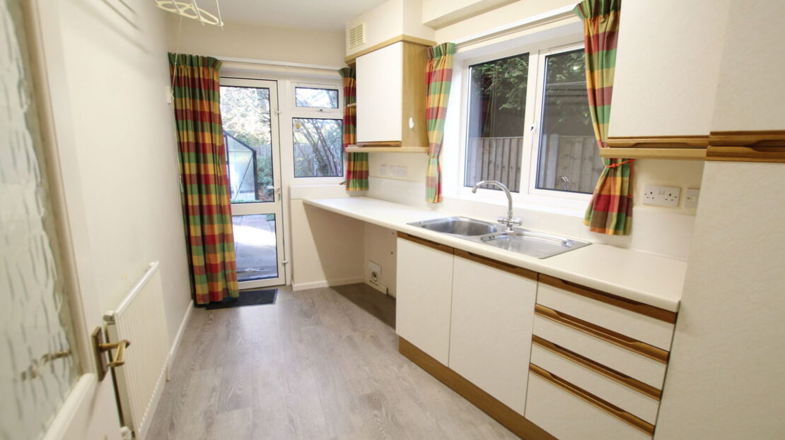 uPVC double glazed window to side elevation and door to rear elevation, single panel radiator, base units incorporating single drainer stainless steel sink unit with mixer tap over, roll top work surfaces, plumbing for washing machine, space for tumble dryer.
