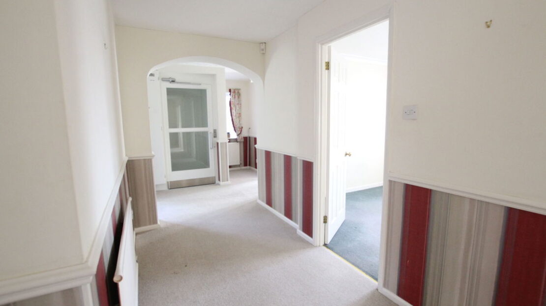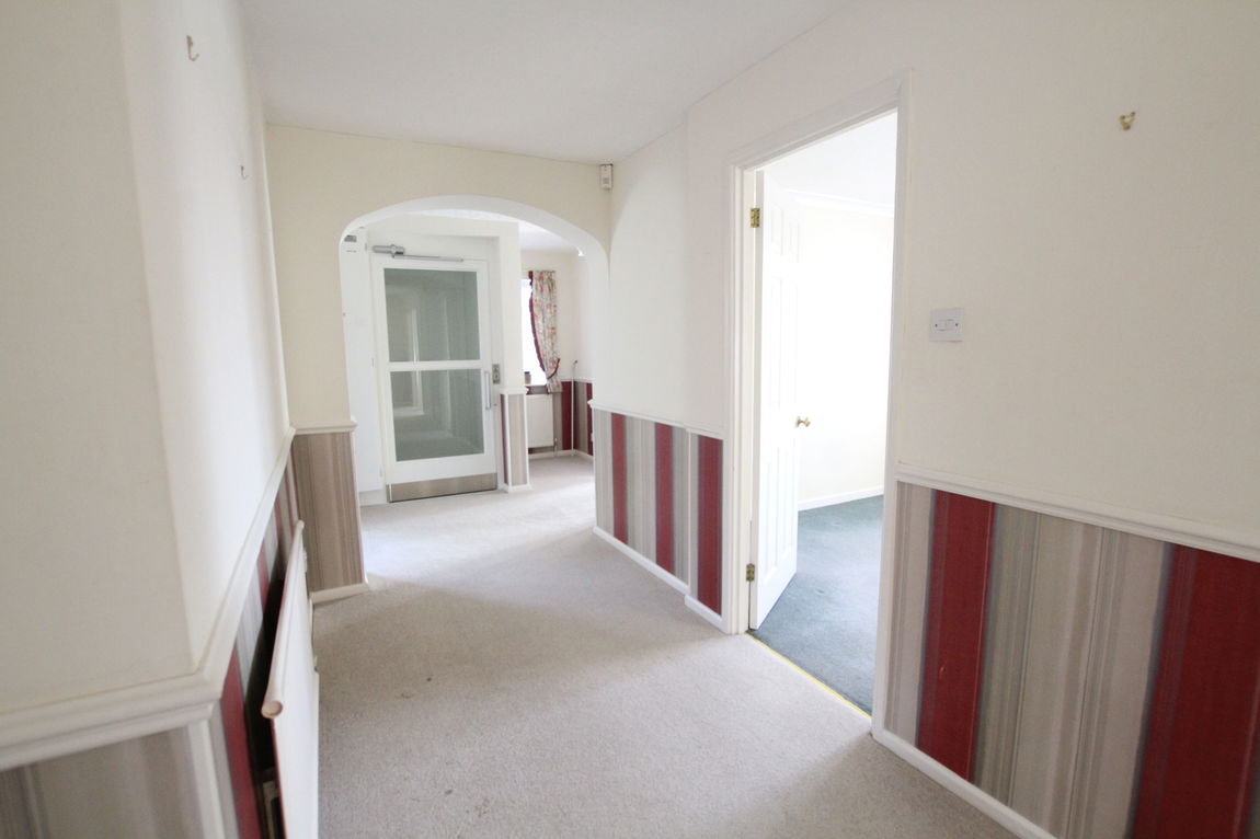 uPVC double glazed window to side elevation, two single panel radiators, first floor lift access door, built-in airing cupboard housing hot water tank and linen shelves, access to loft space, communicating doors to: