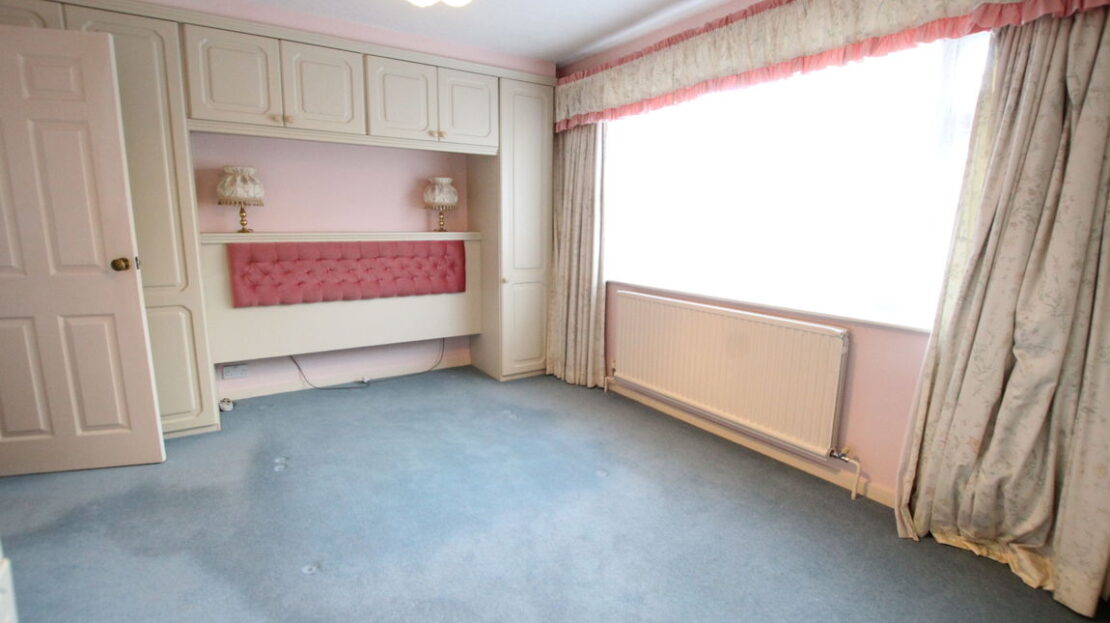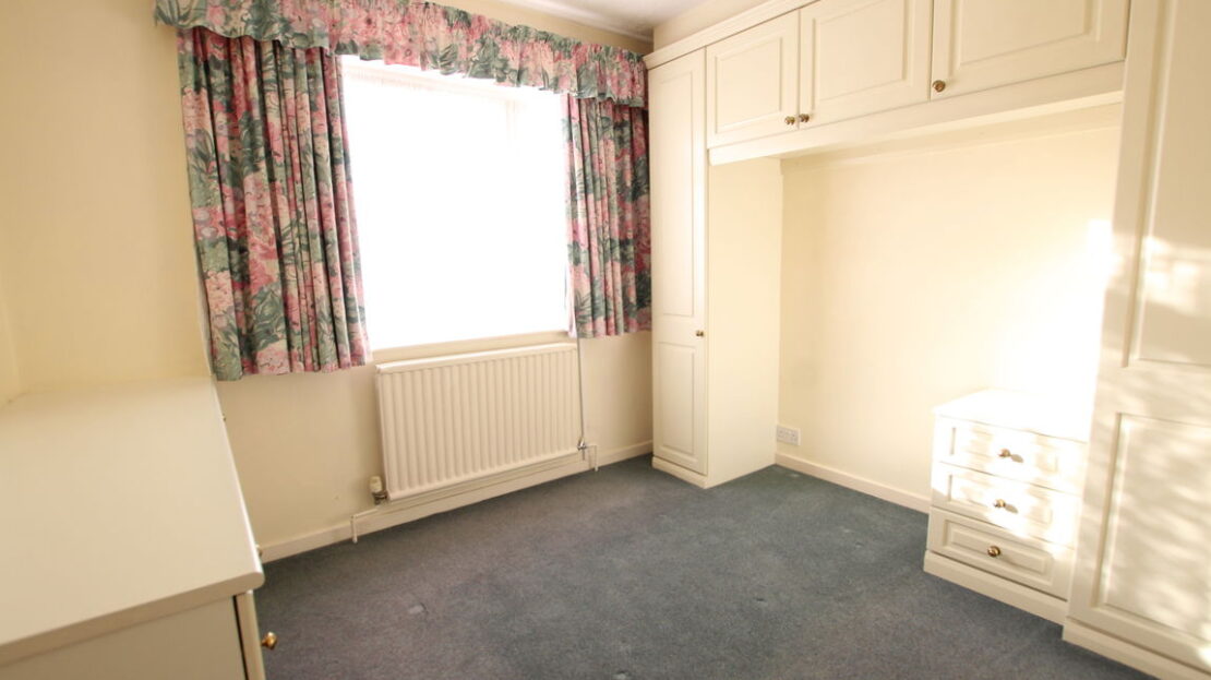 uPVC double glazed window to rear elevation, double panel radiator, built-in three door wardrobe with rail and shelf fitted, coving to ceiling.
