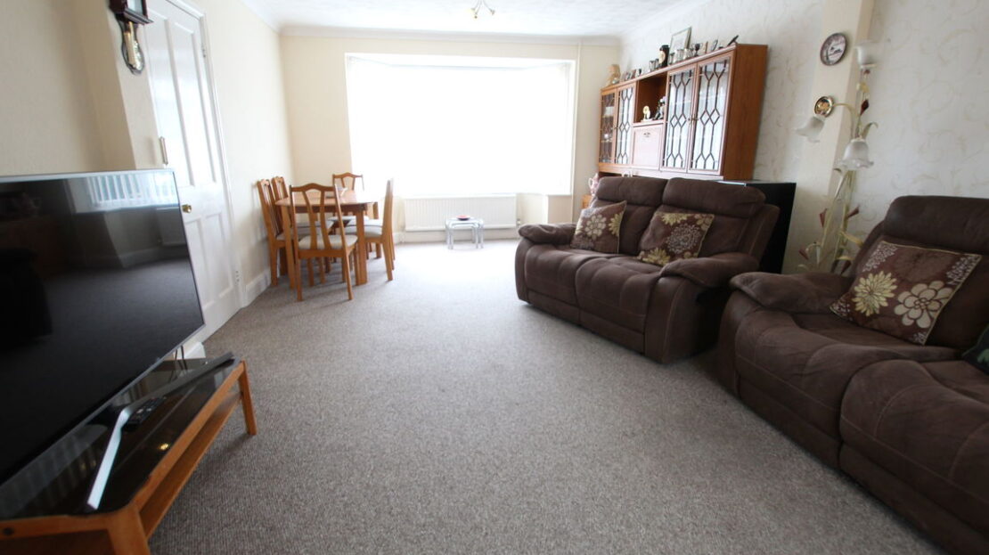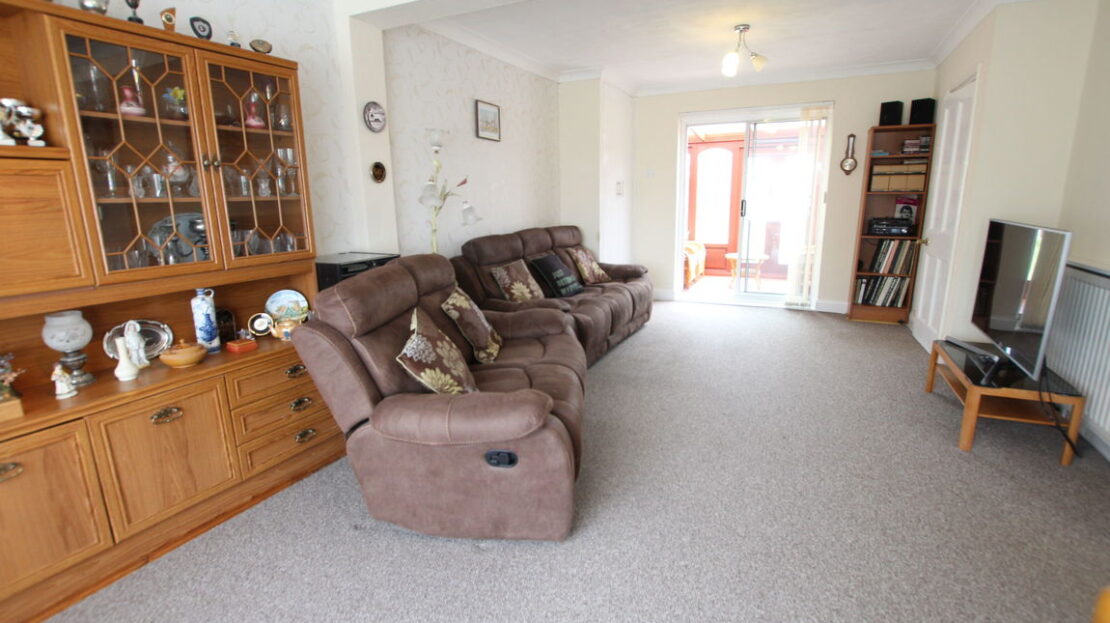 uPVC double glazed bay window to front elevation and sliding double glazing patio door to rear elevation opening into the conservatory, two double panel radiators, coving to ceiling, fitted cupboard housing hot water tank, door to Kitchen.
