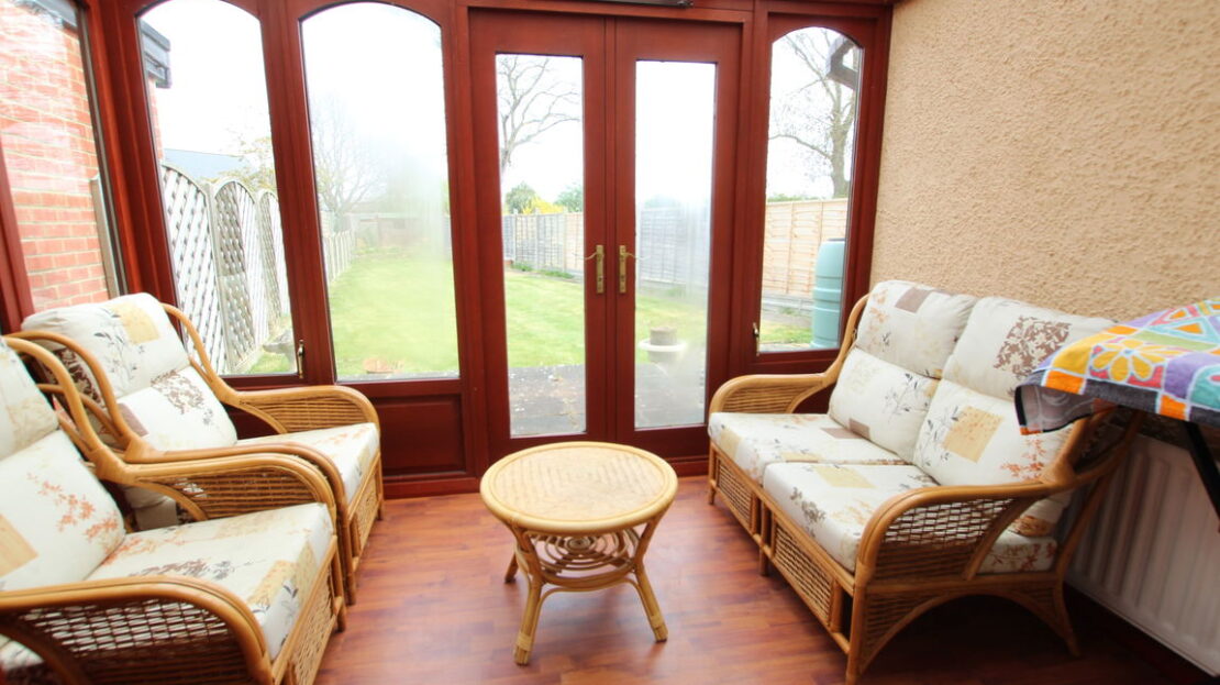 Timber double glazed conservatory/garden room, double doors to rear elevation to garden, single panel radiator, fitted cupboard housing oil fired boiler.