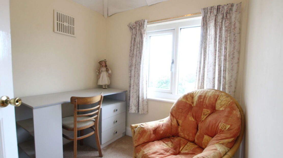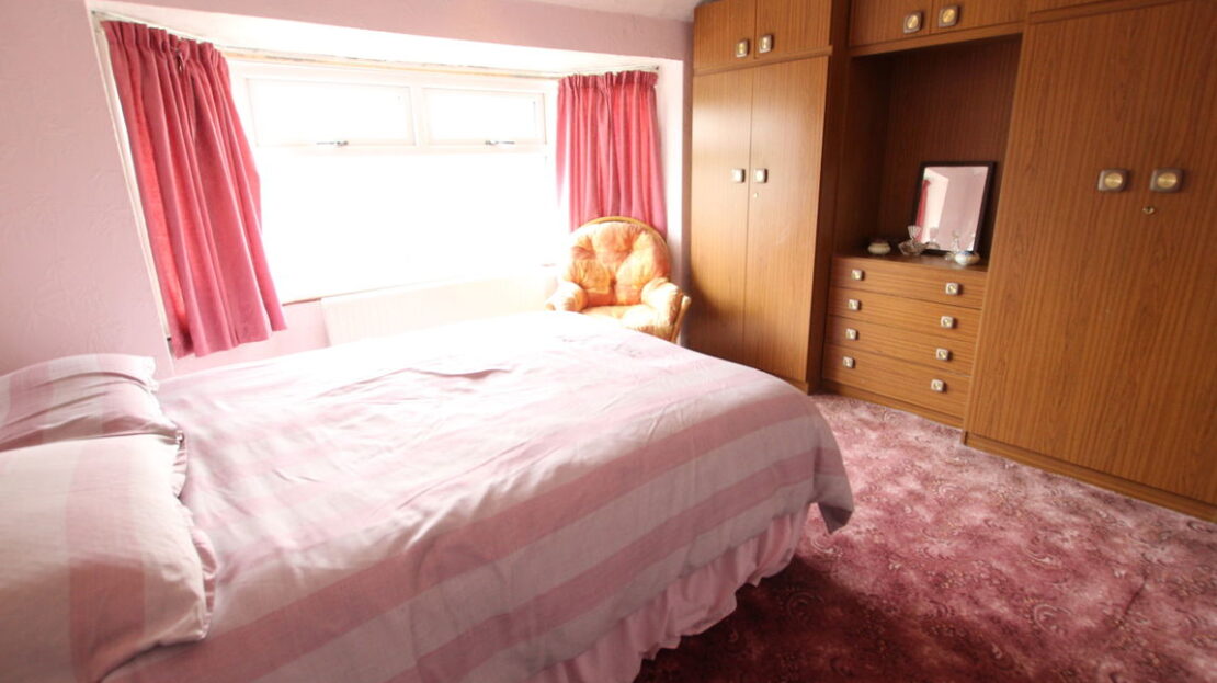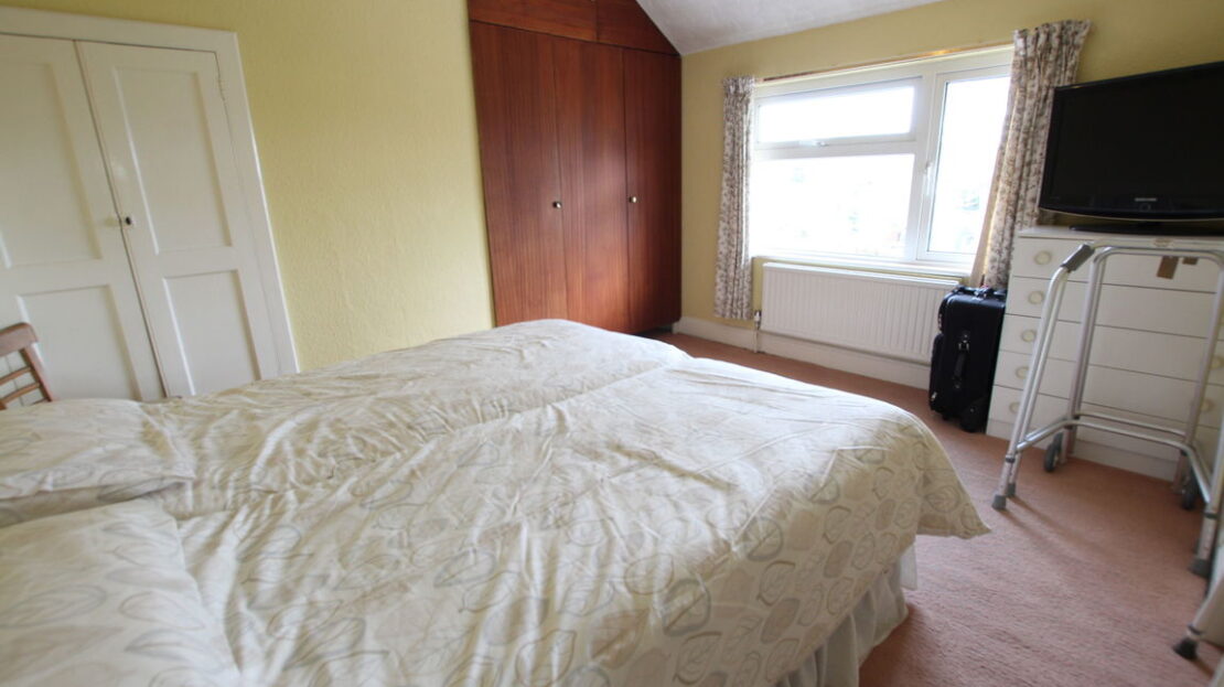 uPVC double glazed window to rear elevation, single panel radiator, fitted double door storage cupboard and triple door wardrobe, access to loft space.