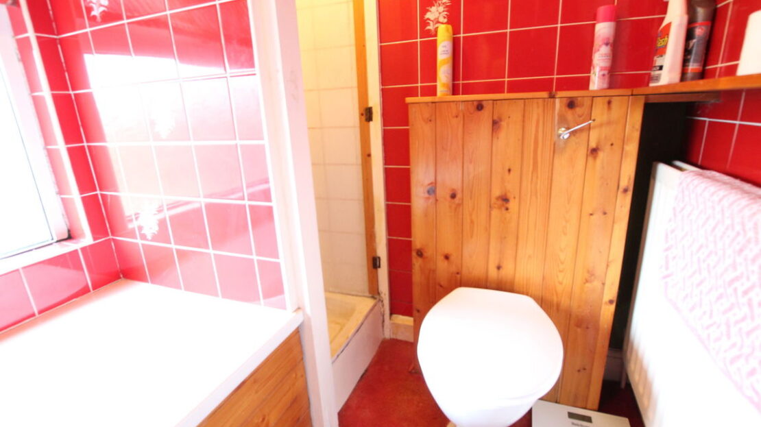uPVC obscure double glazed window to rear elevation, double panel radiator, fitted as a four-piece suite comprising of low level W.C, wash hand basin, panel bath with shower/mixer tap over, plus a small end separate shower cubicle, tiling to all elevations.