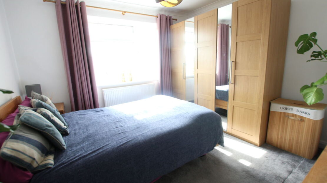 uPVC double glazed window to rear elevation, double panel radiator, fitted free standing wardrobe with sliding doors plus rail and shelf fitted, coving to ceiling.