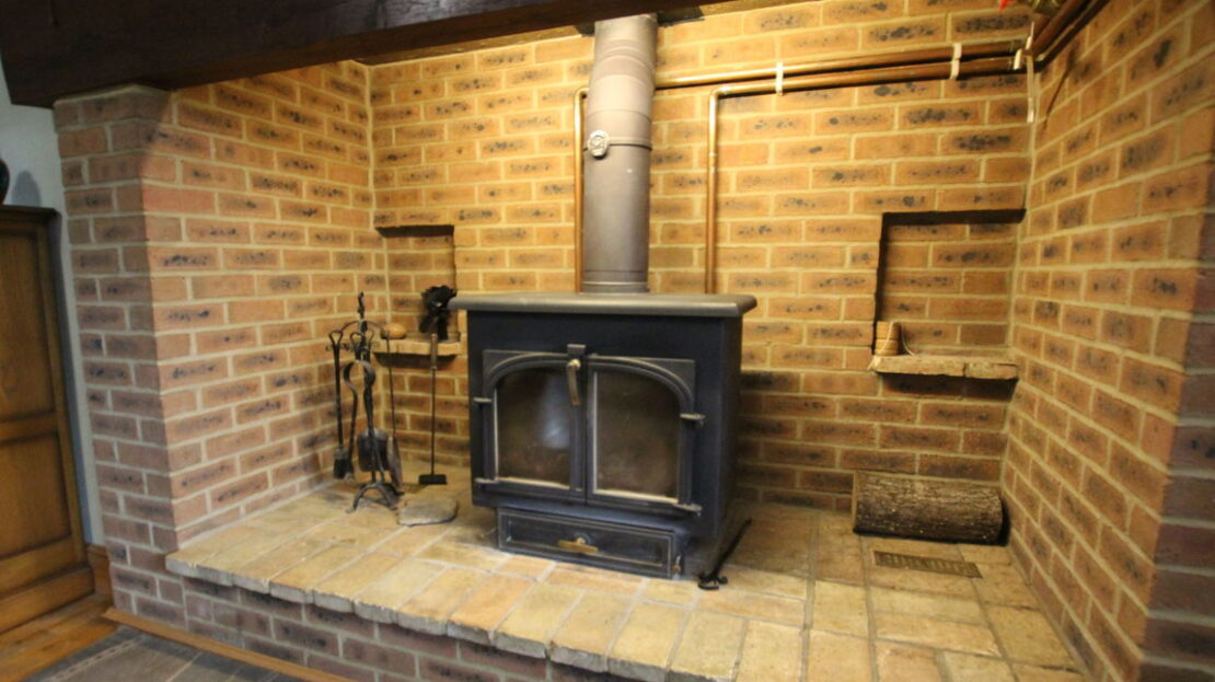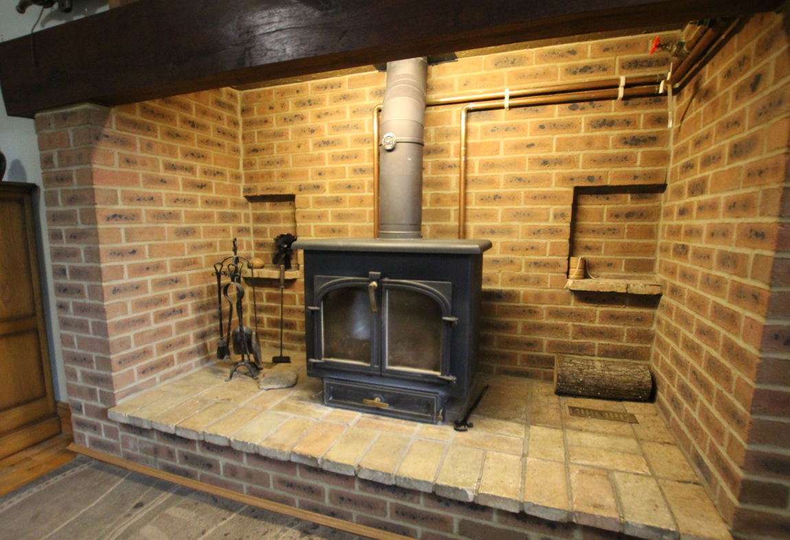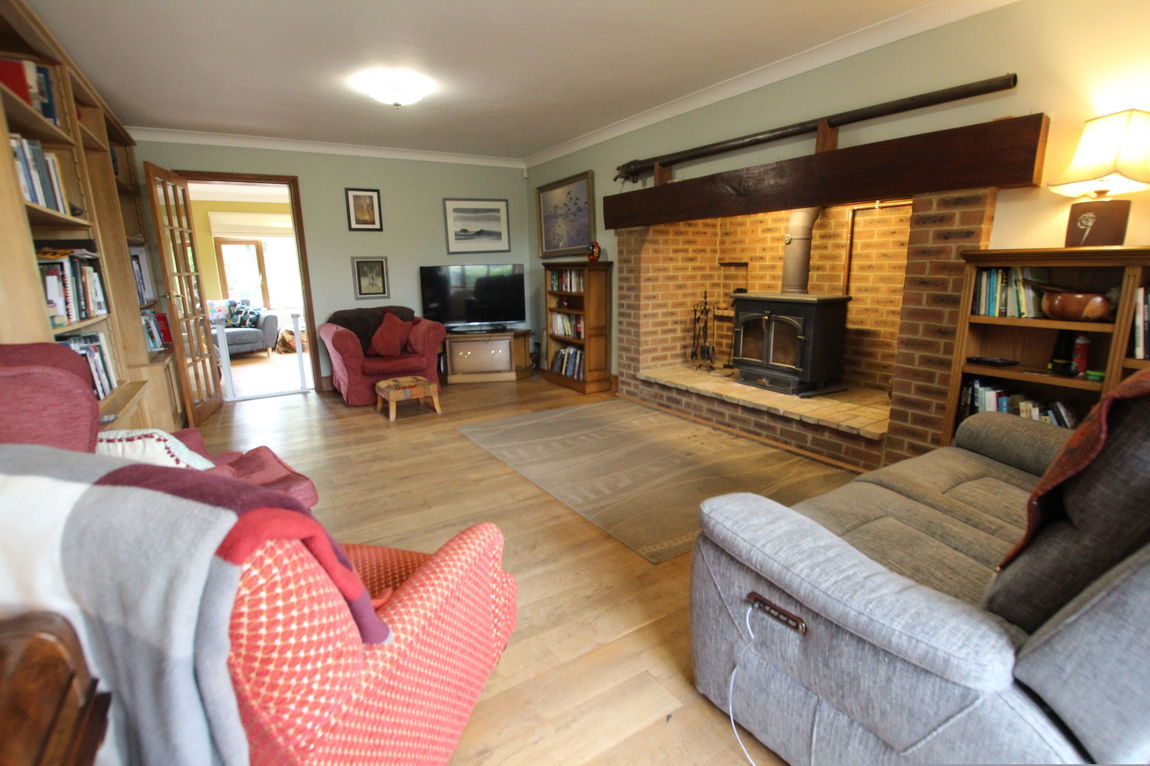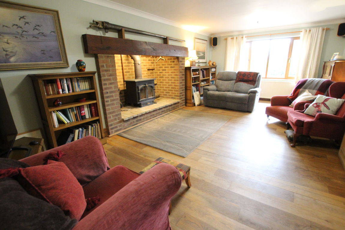 uPVC double glazed window to front elevation, double panel radiator, impressive inglenook style brick fireplace with inset cast iron burner, continued wood flooring, coving to ceiling.