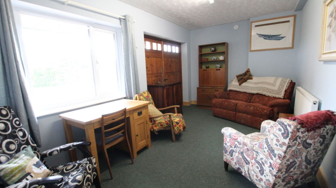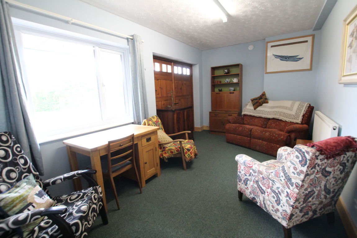 Triple aspect room with views across gardens, uPVC double glazed windows to both side elevations and rear elevations, matching double doors to rear and single side access door, two double panel radiators, engineered wood topped flooring.