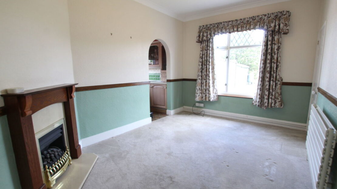 uPVC double glazed window to rear elevation, double panel radiator, fitted dado rail, decommissioned gas fire with surround, coving to ceiling, door to: