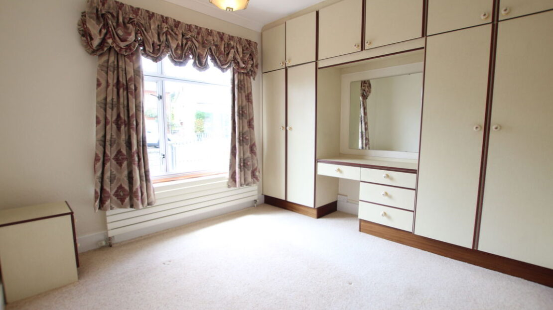 uPVC double glazed window to front elevation, double panel radiator, fitted range of bedroom furniture including wardrobes, dressing table and bedside units, coving to ceiling.