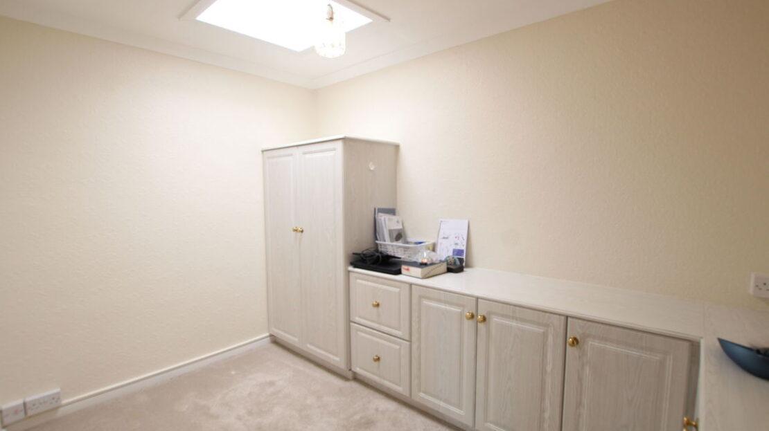 uPVC double glazed window to side elevation, double panel radiator, fitted range of bedroom furniture including wardrobes, dressing table with drawers and bedside units plus headboard and over bed units, coving to ceiling.