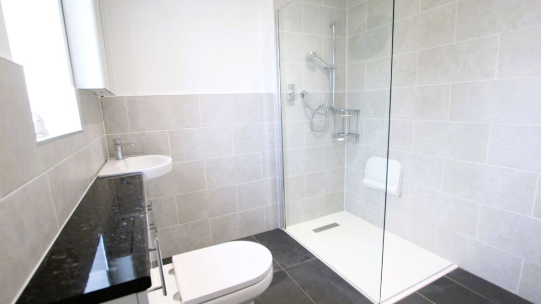 uPVC obscure double glazed window to rear elevation, a redesigned bathroom that now boasts an easy access luxury fitted 1100mm shower area with floor level soakaway, chrome vertical towel rail/radiator, low level W.C and wash hand basin set into vanity unit, tiled floor and tiling to splash areas.