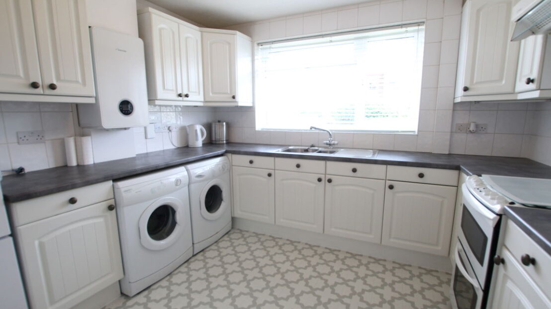 (Also entered via Entrance Hall) uPVC double glazed window to front elevation, fitted kitchen comprising of single drainer stainless steel sink unit with mixer tap over, roll top work surfaces, range of base units, Electrolux gas cooker, Hotpoint washing machine, Hotpoint tumble dryer, Beko fridge/freezer, tiling to splash areas, matching range of wall mounted units incorporating extractor hood, wall mounted Worcester gas boiler (installed in 2023).