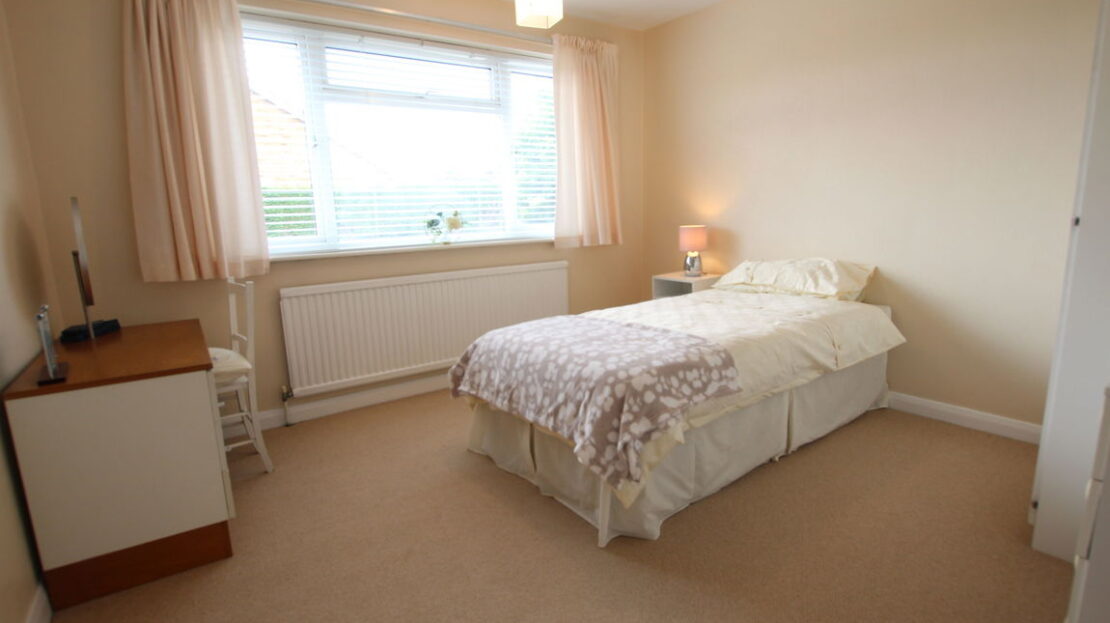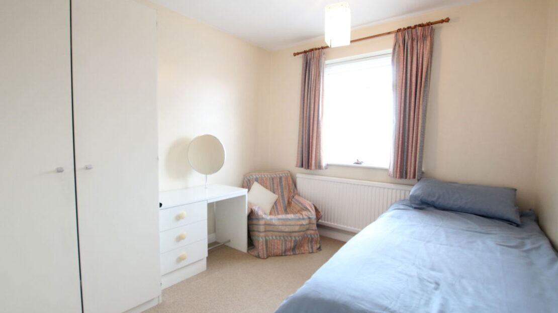 uPVC double glazed window to rear elevation, single panel radiator, built-in wardrobe.
